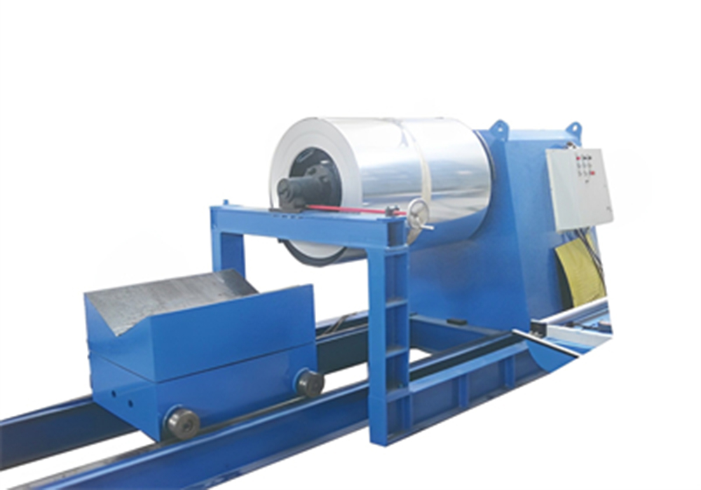 The machine consists of two independent roll forming systems, each with its own set of rollers and tooling. These systems are aligned in such a way that they can work together to produce two different profiles or layers in a synchronized manner.